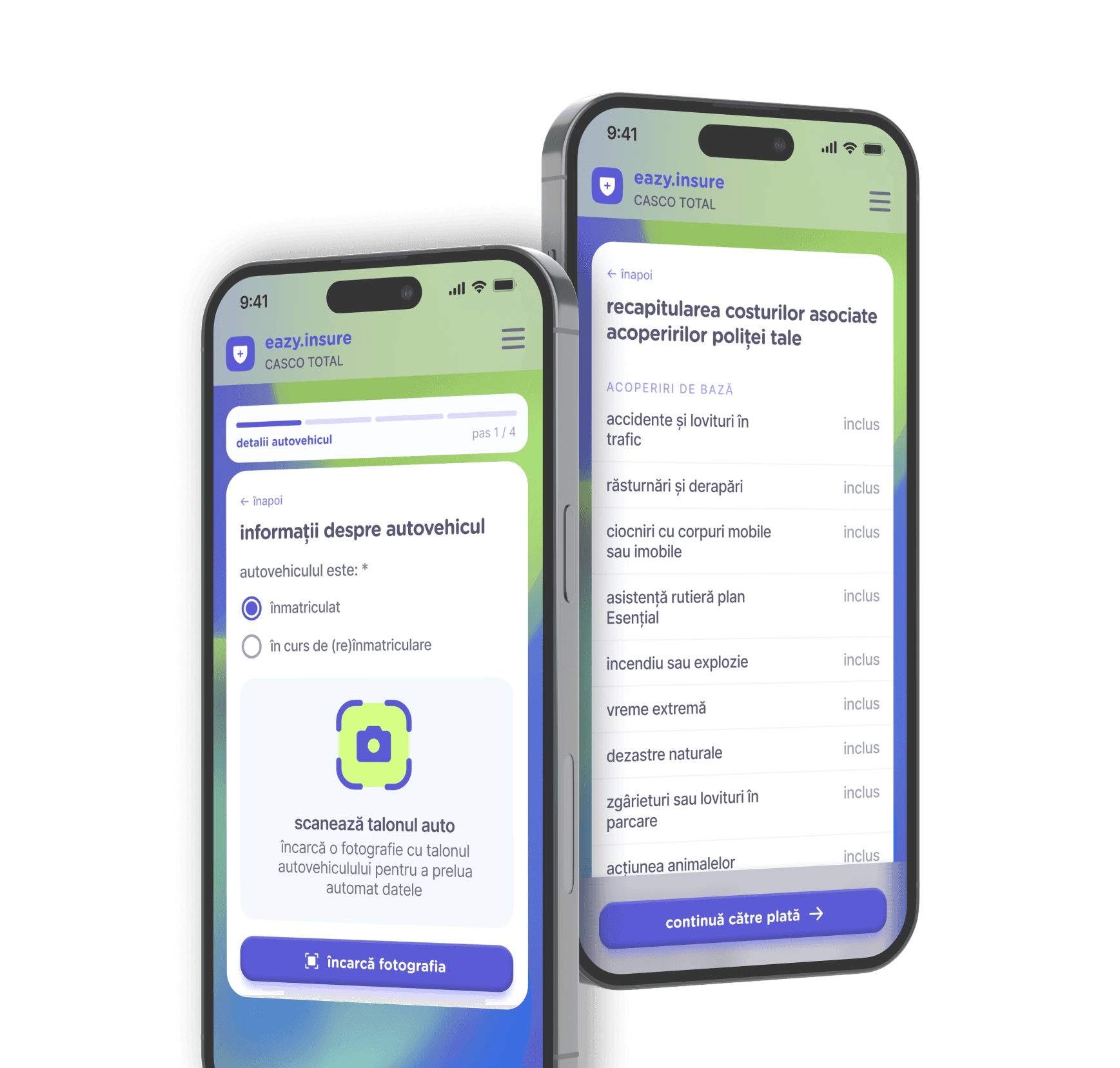 vezi oferta detaliată, plătești online și îți emiți polița eazy Casco Total în câțiva pași